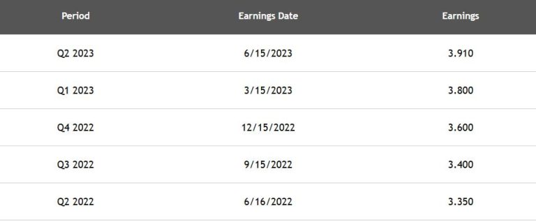According to NextEarningsDate.com, the Adobe ADBE next earnings date is projected to be 9/14 after the close, with earnings estimates of $3.97/share on $4.88 Billion of revenue. Looking back, the recent Adobe earnings history looks like this:
