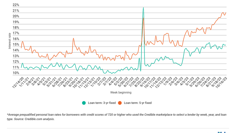 Personal loan interest rates spiked over the last seven days for 3- and 5-year loans. Three-year loans rose by 0.41 percentage points. Meanwhile, 5-year loans spiked by 0.77 percentage points. Interest rates for both loan terms remain significantly higher than they were this time last year. Still, borrowers can take advantage of interest savings with a 3- or 5-year personal loan right now. Both loan terms offer interest rates that are much lower than higher-cost borrowing options such as credit cards.